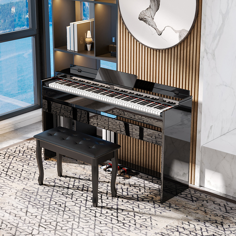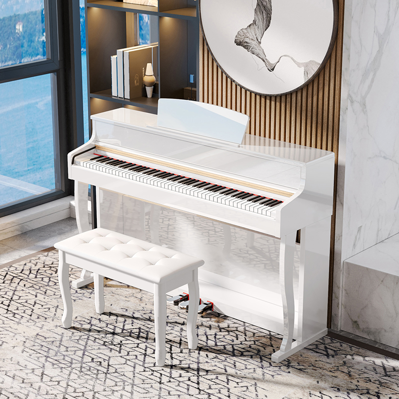 The BL-980 Large Cabinet Pure Steel Edition is Bolanshi's flagship product for high-end home users. Featuring a glossy lacquer finish and available in classic black or pure white, it blends seamlessly into any home style. This digital piano's most striking feature is its **88-key, internationally standard-sized, progressively weighted hammer piano keyboard**, which accurately simulates the touch of a traditional grand piano, providing players with an unparalleled playing experience.